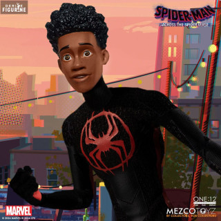 Hey there, fan of the coolest spider in the universe! I present to you the Miles Morales figurine from “Spider-Man: Across the Spider-Verse” by Mezco Toys. This One:12 piece is a faithful representation in 1/12 scale and stands 17cm tall.