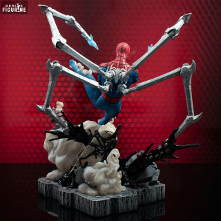 The Spider-Man figurine by Diamond Select Toys presents our heroes in a dynamic and acrobatic pose, in full combat with his time. The minute details of his costume, with its dazzling embroidery and web motifs, are reproduced with a highly precise, attention-grabbing portée on each side of this sculpture. Additional mechanical parts, Inspired by the Iron Spider, it is a futuristic touch and impressive to this piece.
