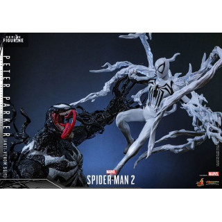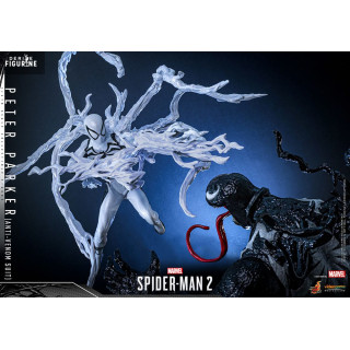 Dive into the epic universe of Spider-Man 2 with this official figure of Peter Parker in his Anti-Venom Suit, a captivating representation of the character's evolution in the video game. Standing approximately 30 centimeters tall at a 1/6 scale, this figure from Hot Toys' Video Game Masterpiece collection combines detailed design with impressive articulation, allowing for dynamic and iconic poses.