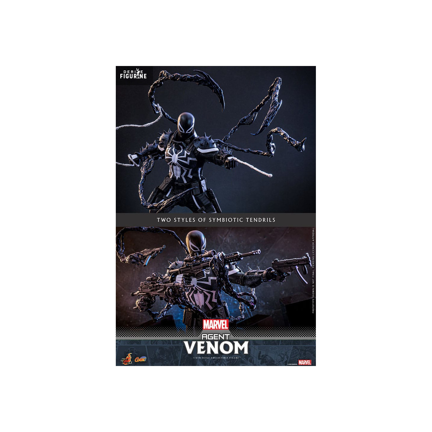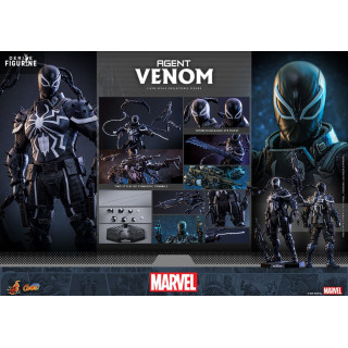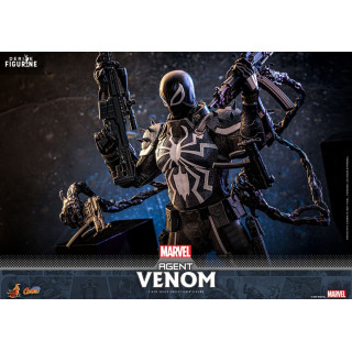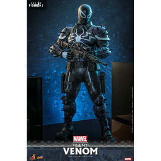 Official figure of Agent Venom which measures approximately 32 centimeters high, scale 1/6. The manufacturer is Hot Toys.