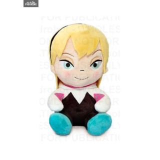 The little cuddly toy that is here is Ghost-Spider (or Spider-Gwen, Spider-Woman or Gwenom). The fact that she does not wear her hood, lets you admire her beautiful face, with her long blond hair. So if you're fans of her, this is the perfect opportunity.