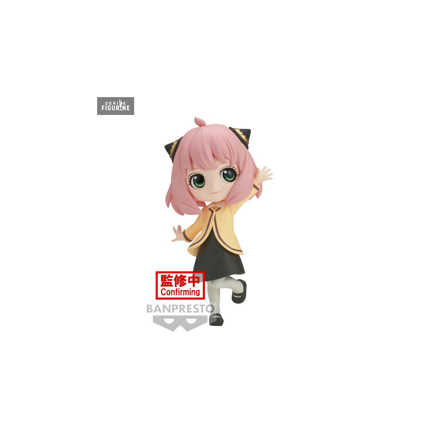 Anya Forger (007) from the famous series Spy x Family is a student of Edenet Academy and a great telepath. She has the appearance of a fair-skinned girl with large green eyes. She is an orphan taken in by a spy, who will make her an important teammate. Her simple but elegant outfit consists of a black dress, with a yellow blouse, large white socks and small black shoes. Also she wears ornaments on her pink hair. Bring some cuteness into your collection with Anya!
