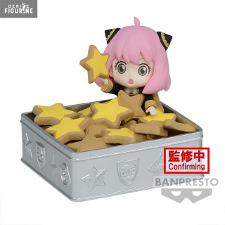 The Anya Forger figurine from the Paldolce Vol. 1, version A, is an adorable depiction of the character Anya from "SPY×FAMILY". In this figure, Anya is sitting in front of a huge box of star cookies, which adds a touch of charm to the scene. Paldolce figures are known for their quality and attention to detail, and this one is no exception. If you're a fan of "SPY×FAMILY" or looking for a cute figure to add to your collection, this one would be a great choice. She perfectly captures Anya's mischievous and adorable spirit, making her a must-have collector's item for fans of the series.
