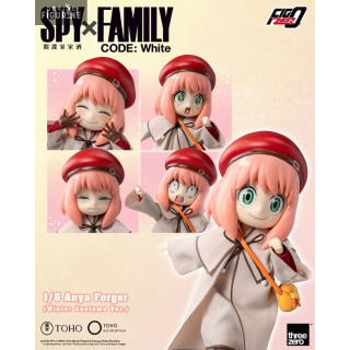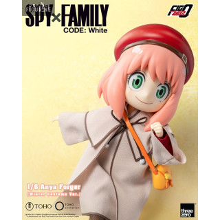 Official figure of Anya Forger, Winter Costume which measures approximately 17 centimeters high, scale 1/6. It is from the FigZero collection. The manufacturer is ThreeZero.