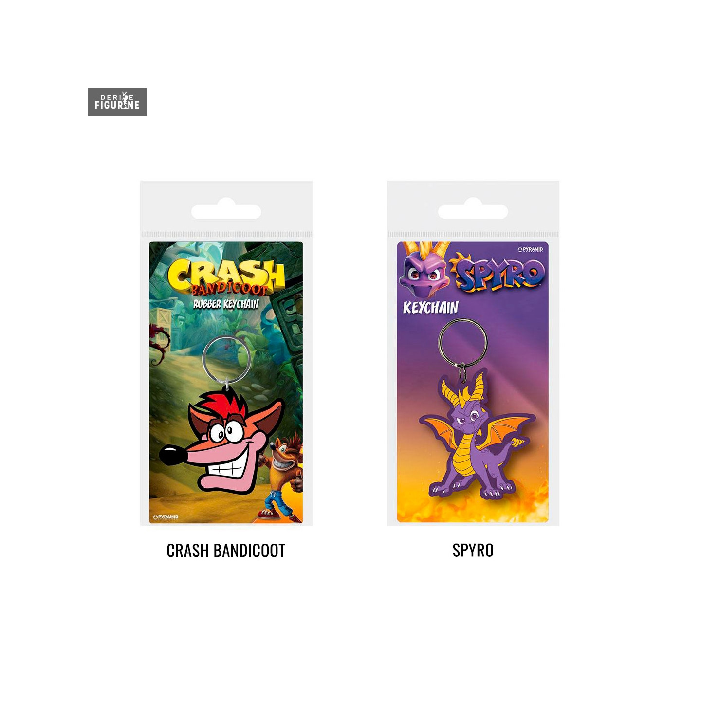Official keyring of your choice of Spyro the Dragon Stance or Crash Bandicoot Extra Life in rubber measuring approximately 4,5x6 centimeters. The manufacturer is Pyramid International.