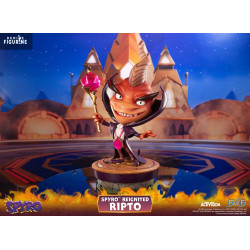 Made entirely from resin, this statue stands approximately 47 cm tall. It rests on a round base featuring stone and wood textures that echo the stylized environments of the game. With its crisp paintwork and vibrant colors, this is a standout piece for any Spyro fan.