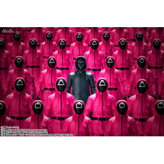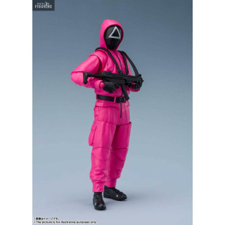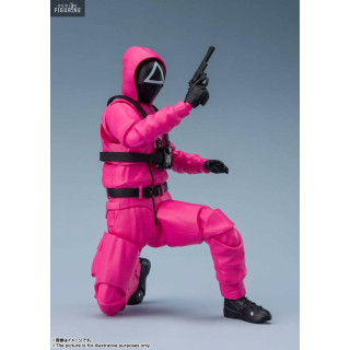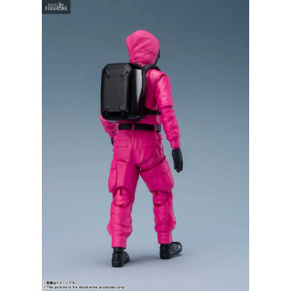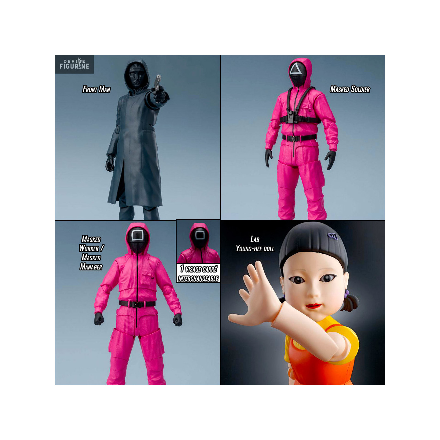 Official figure of your choice of Front Man (14 cm), Soldier (14 cm), Worker / Manager (14 cm contains 1 body + 1 round shaped face + 1 square shaped face to interchange) ou Lab Young-hee doll (26 cm working with two batteries AA not included). It is from the S.H. Figuarts collection. The manufacturer is Tamashii Nations.