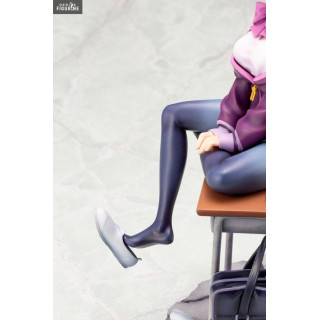 This PVC figure, standing approximately 21 cm tall at a 1/7 scale, is produced by Kotobukiya, known for its high-quality figures and attention to detail. Akane is depicted sitting on a school desk, an iconic element that reflects both her everyday surroundings and her detached personality. Her slightly fallen jacket, short purple hair, and thoughtful expression perfectly capture the mysterious aura surrounding Akane.