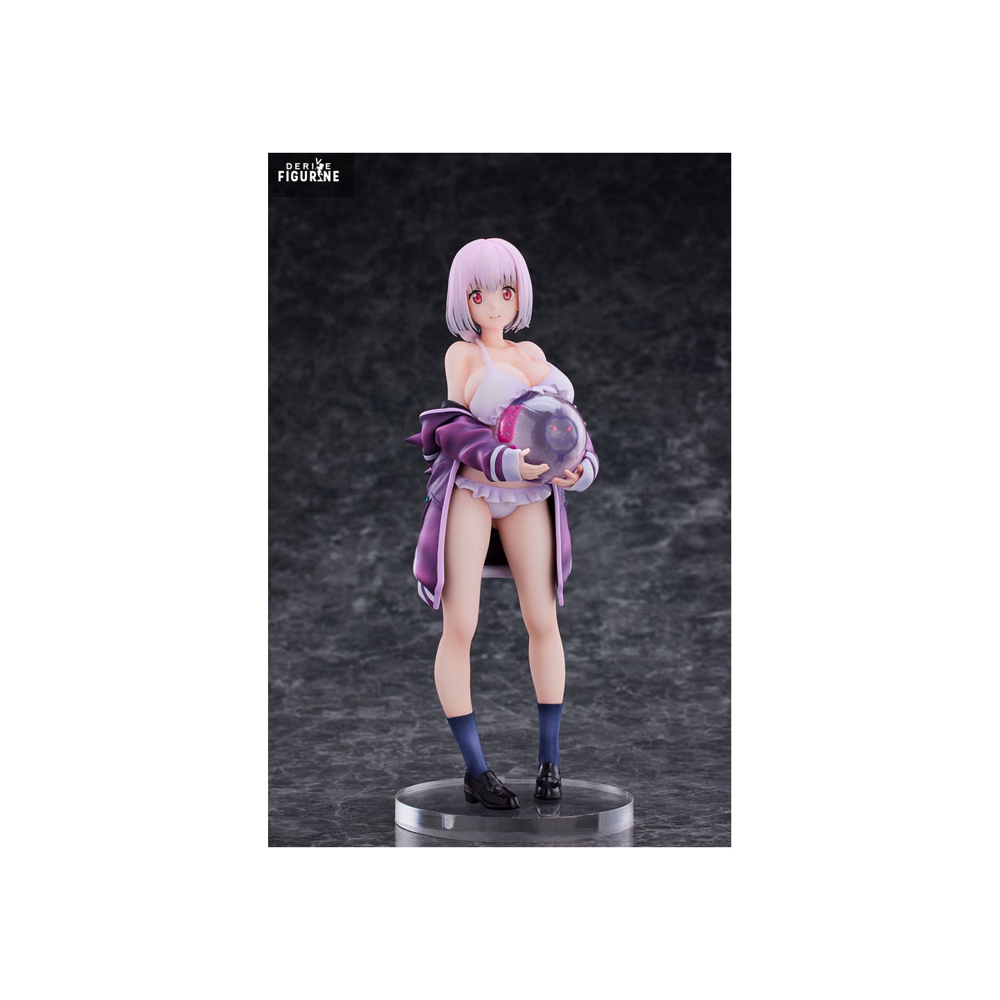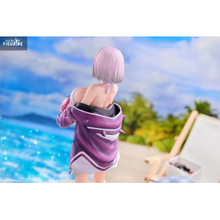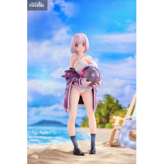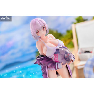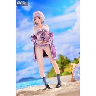 With a soft gaze and a beach ball in her arms, Akane Shinjo appears here in a serene, summery version full of quiet charm. This 1/7 scale PVC figure stands at approximately 23 cm tall, showing Akane in a white swimsuit under a loose purple jacket, slipping off her shoulders. Paired with high socks and black shoes, the outfit is both casual and uniquely her own.