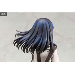 The details are meticulous, from her dark hair gently swept by the wind to the realistic folds in her clothing. The stone-like base complements the scene, recalling the SSSS.Gridman universe and its titanic battles. This figure is a must-have for any fan of the series, offering a faithful and elegant representation of Rikka Takarada.