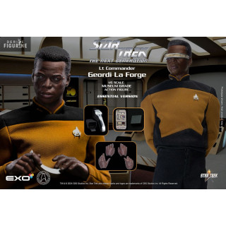 Official figure of Commander Geordi La Forge which measures approximately 28 centimeters high, scale 1/6. The manufacturer is EXO-6.