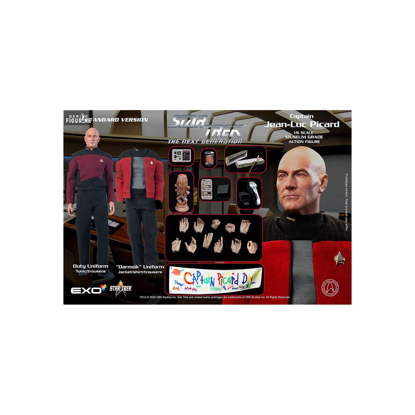 Official figure of Captain Jean-Luc Picard which measures approximately 30 centimeters high, scale 1/6. The manufacturer is EXO-6.
