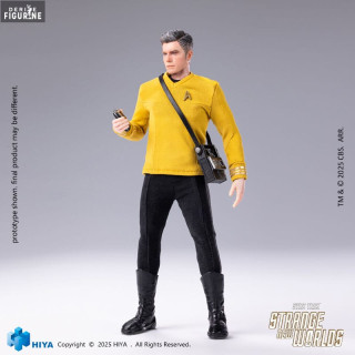 Pike commands the USS Enterprise before the era of Captain Kirk, embodying a leadership style rooted in compassion, wisdom, and bravery. In Strange New Worlds, we see a captain grappling with his own fate while inspiring loyalty and strength in those around him. This figure captures his iconic look down to the smallest elements: textured yellow uniform, black boots, and the gold command insignia.