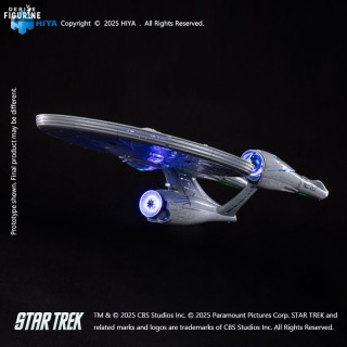 Official figure of Starship SS Enterprise NCC-1701 which measures approximately 38 centimeters high. It is from the ReplicaArt Series Light Up collection. The manufacturer is Hiya Toys.