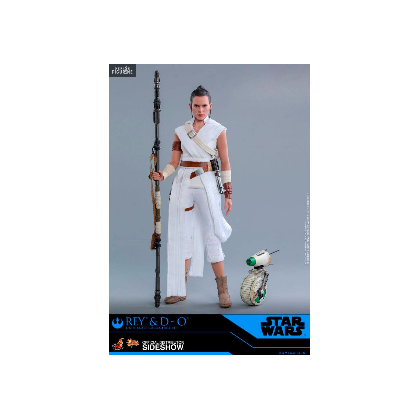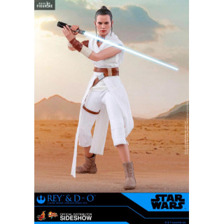 Official figures of Rey and D-O which measure about 28 centimeters high, scale 1/6. They are from the Movie Masterpiece collection. The manufacturer is Hot Toys.