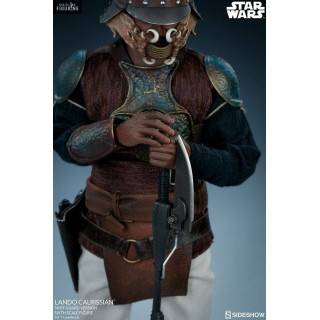 Official figure of Lando Calrissian which measures about 30 centimeters high, scale 1/6. The manufacturer is Sideshow Collectibles.