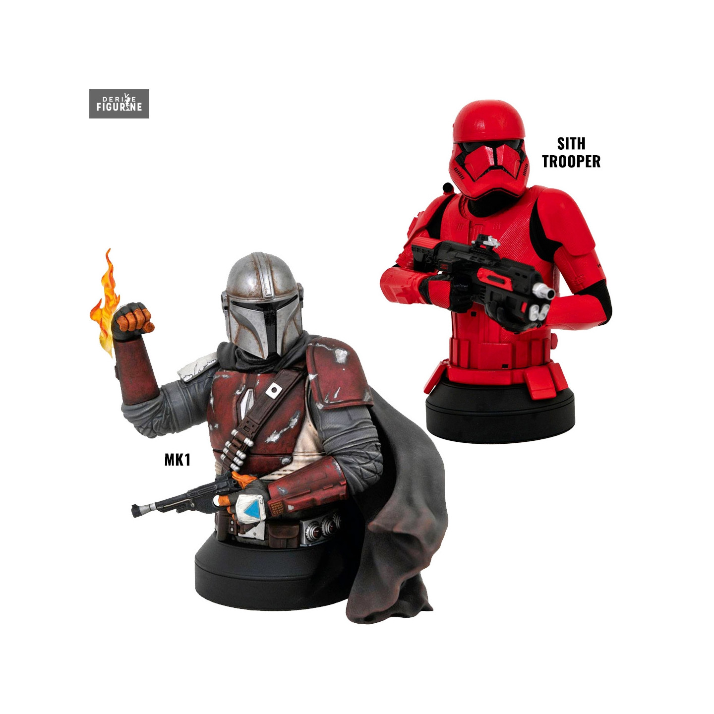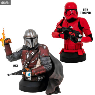 Official bust of your choice of The Mandalorian MK1 or Episode IX Sith Trooper in resin which measures about 15 centimeters high, scale 1/6. The manufacturer is Diamond Select Toys.