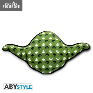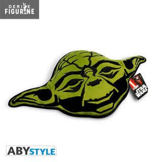 Star Wars cushion representing Yoda which measures approximately 35 centimeters large for about 8 in thickness. It is in Velboa and Polyester. The manufacturer is ABYstyle.
