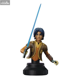 Official bust of Ezra Bridger in resin which measures approximately 13 centimeters high, scale 1/7. The manufacturer is Gentle Giant.