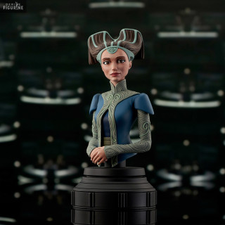 Official bust of Padme Amidala in resin which measures approximately 17 centimeters high, scale 1/7. It is from the Animated Mini Bust collection. The manufacturer is Diamond Select Toys.