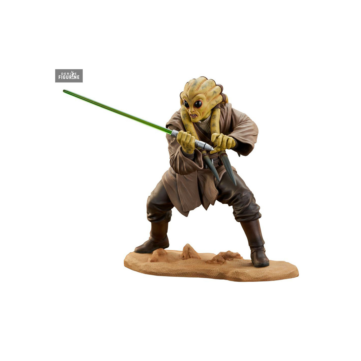 Kit Fisto is a Nautolan, born on the planet Glee Anselm. As a Jedi master, he participated in several battles, including that of Coruscant or the clone wars. Here he is from Star Wars Episode II: Attack of the Clones, with his green lightsaber. It is limited to only 3,000 pieces, with numbered certificate of authenticity.
