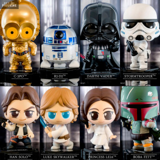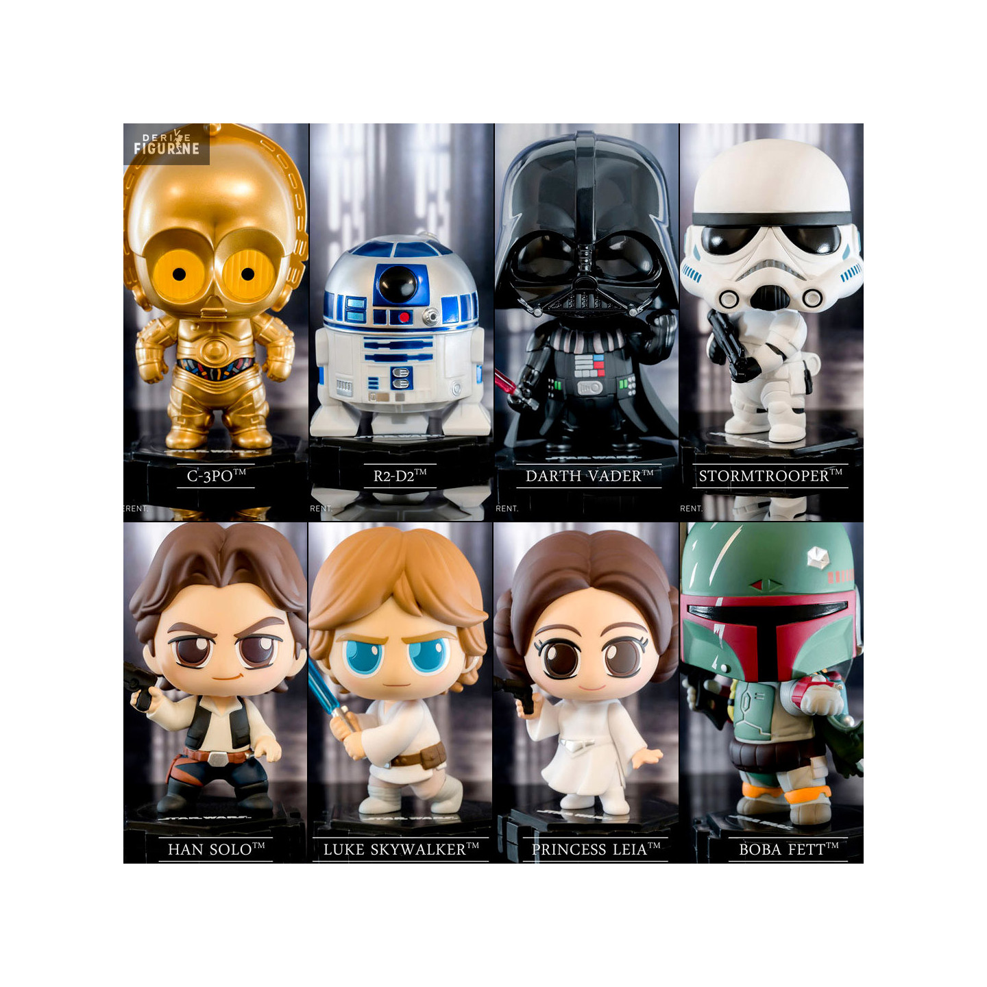 Official figure of your choice between Princess Leia, Luke Skywalker, Han Solo, C-3PO, R2-D2, Darth Vador, Stormtrooper or Boba Fett in PVC which measures approximately 8 centimeters high. It is from the Cosbi collection. The manufacturer is Hot Toys.