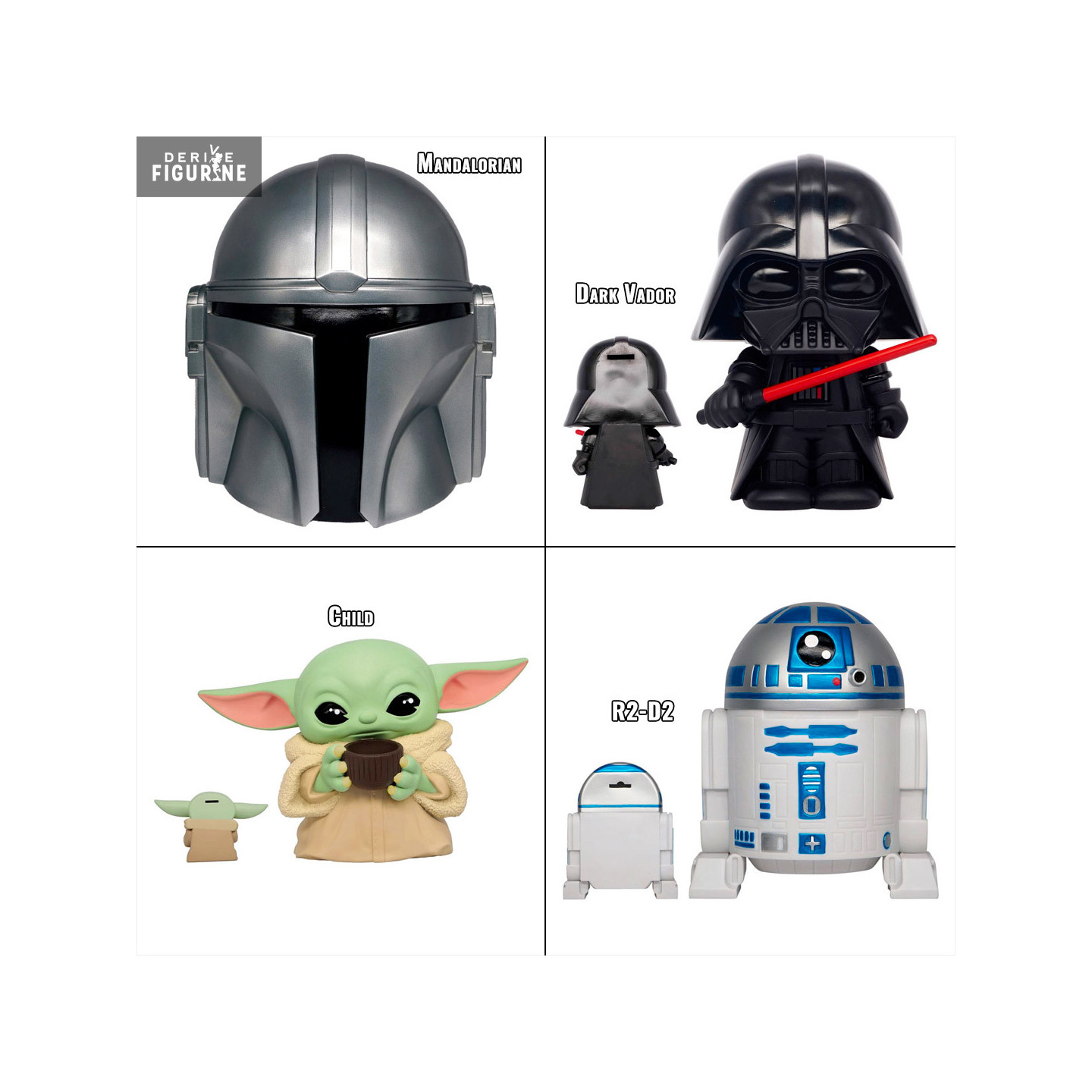 Star Wars fans will have the right to choose between four figurines with a pretty cute design that are also piggy banks. The whole thing now is to know if you prefer the dark side of the force with Darth Vader, rather that of the jedi with R2-D2, or even The Child (Grogu) or his protector with the Mandalorian helmet.