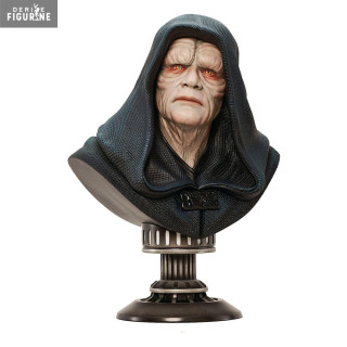 Official bust of Emperor Palpatine in resin which measures approximately 25 centimeters high, scale 1/2. It is from the Legends in 3D collection. The manufacturer is Diamond Select Toys.