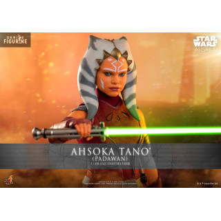 Official figure of Ahsoka Tano, (Padawan) which measures approximately 27 centimeters high, scale 1/6. The manufacturer is Hot Toys.