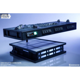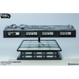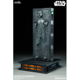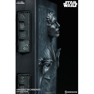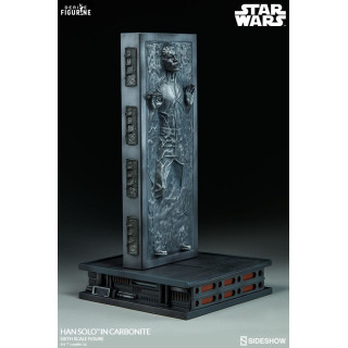 Official figure of Han Solo in Carbonite which measures approximately 38 centimeters high, scale 1/6. The manufacturer is Sideshow Collectibles.