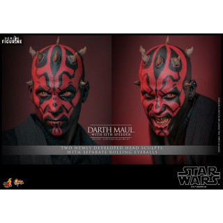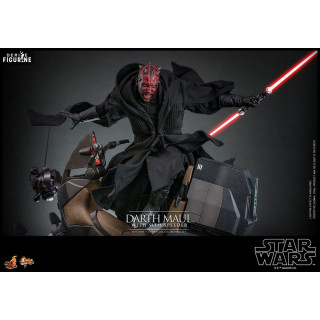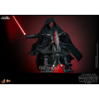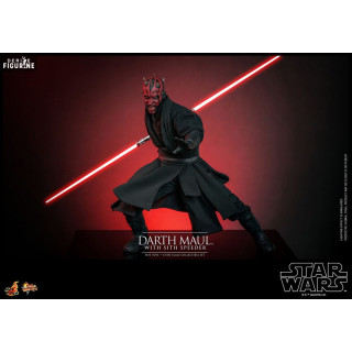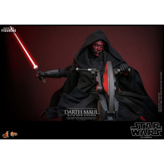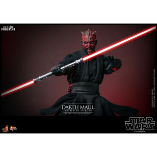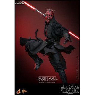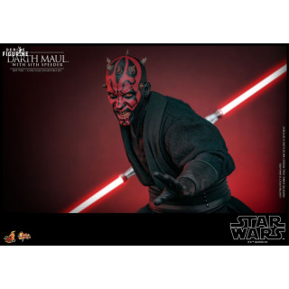 Official figure of Darth Maul with Sith Speederwhich measures approximately 29 centimeters high, scale 1/6. It is from the Movie Masterpiece collection. The manufacturer is Hot Toys.