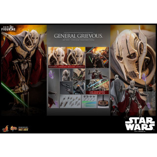 Immerse yourself in the epic universe of Star Wars with this official General Grievous figure, from the prestigious Movie Masterpiece collection. Manufactured by Hot Toys, this diecast figure stands approximately 16.5 inches tall and is a 1/6 scale collectible, capturing with extraordinary precision one of the most formidable antagonists of the saga.