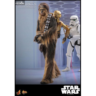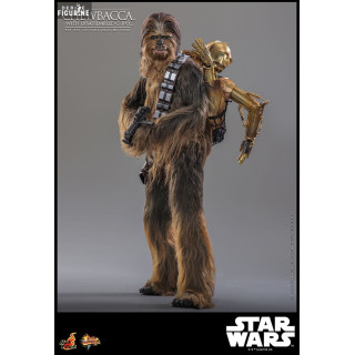 Official figure of Chewbacca with Disassembled C-3PO in diecast which measures approximately 36 centimeters high, scale 1/6. It is from the Movie Masterpiece collection. The manufacturer is Hot Toys.