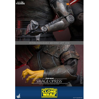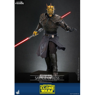 This official Savage Opress figure, crafted by Hot Toys, stands approximately 34 centimeters tall and is in 1/6 scale, making it an impressive model in both size and detail. Made of high-quality PVC, this piece faithfully captures the menacing appearance of the character with interchangeable horns and multiple faces that allow for various intense expressions. The figure also includes iconic accessories like the red lightsaber, equipped with an LED light effect, to recreate the epic battle scenes from the series. Additionally, the figure comes with a custom stand featuring the Star Wars logo, adding an authentic touch for collectors and fans.