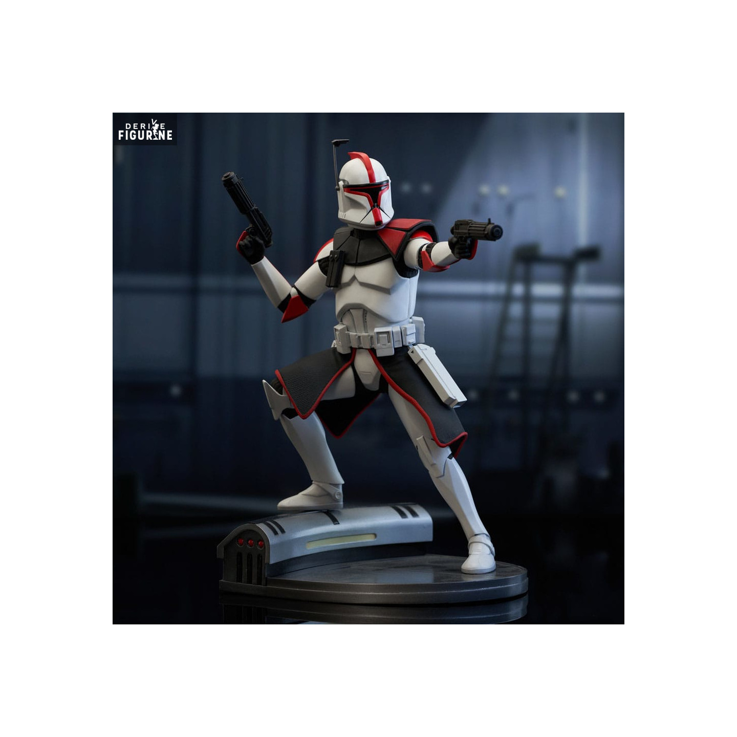 The Captain Fordo figurine pays tribute to one of the most distinguished clones in the Grand Army of the Republic within the Star Wars universe. Known officially as ARC-77, Captain Fordo is an elite clone soldier featured in Genndy Tartakovsky’s Star Wars: Clone Wars series. Fordo is renowned for his bravery, strategic mind, and unwavering loyalty to his fellow soldiers and the Jedi. Wearing his custom armor with distinctive red markings, he stands out not only for his appearance but also for his unyielding attitude against the enemy. Whether in the Battle of Muunilinst or during the defense of Coruscant, Fordo consistently proves his deadly efficiency and composure, becoming an iconic character for fans of the saga.
