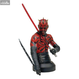 Official bust of Darth Maul (Shirtless) in resin which measures approximately 15 centimeters high, scale 1/6. The manufacturer is Gentle Giant.