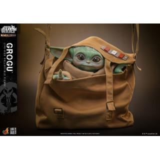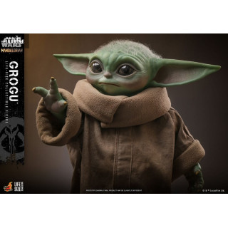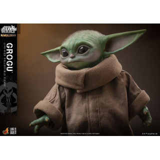 Official figure of Grogu which measures approximately 37 centimeters high, scale 1/1. It is from the Life-Size Masterpiece collection. The manufacturer is Hot Toys.