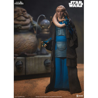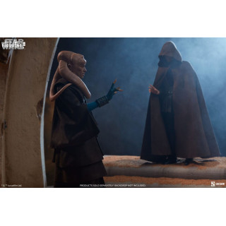Measuring 32 cm tall at 1/6 scale, this Sideshow Collectibles piece blends hard plastic and textile costume elements. Hand-painted details, from the subtle red in his eyes to the shading on his lekku, deliver a polished finish. Perfect for display alongside other saga icons, it embodies the occult power of Jabba’s palace.