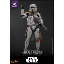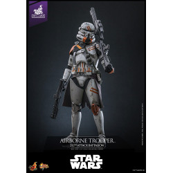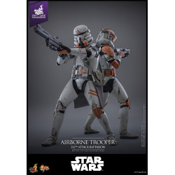Official figure of Airborne Trooper 212th Attack Battalion which measures approximately 30 centimeters high, scale 1/6. The manufacturer is Hot Toys.