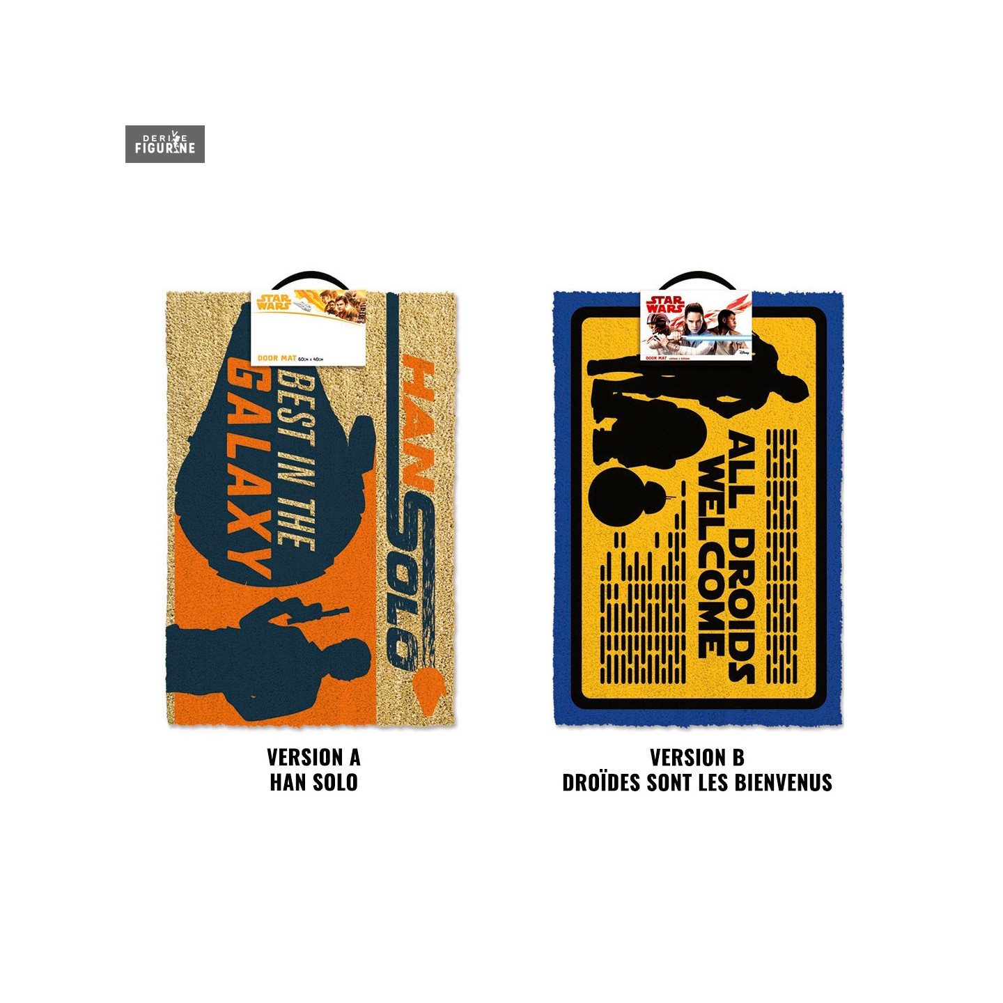 The galaxy is populated by creatures of all kinds so some that can be discovered in Star Wars. For the entrance of your house, you have the choice between two different doormats. Version A represents Han Solo and the Millenium Falcon and Best in the Galaxy, while Version B shows the silhouettes of BB-8, R2-D2 and C3-PO telling us that All droids welcome.