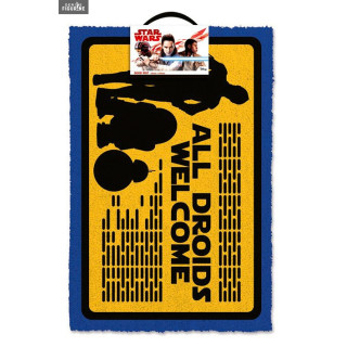 Doormat of your choice between Best In The Galaxy or All Droids Welcome in coconut fiber and PVC about 40x60 centimeters. The manufacturer is Pyramid International.