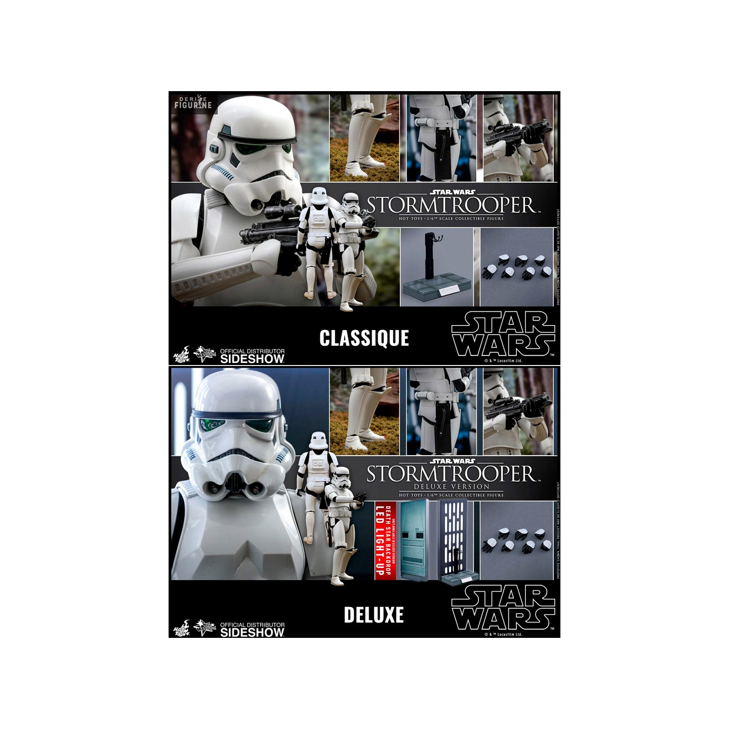 Official figure of your choice between Stormtrooper, classic or deluxe which measures about 30 centimeters high, scale 1/6. It is from the Movie Masterpiece collection. The manufacturer is Hot Toys.