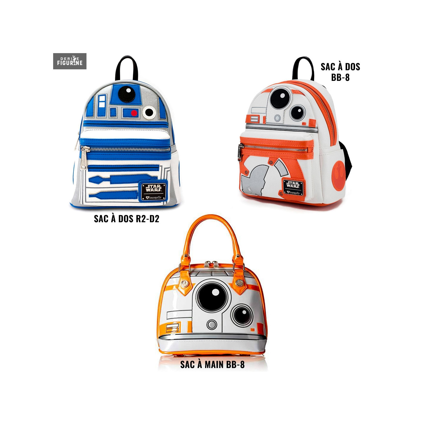 Official backpack or handbag of your choice between BB-8 or R2-D2 (see details in description). The manufacturer is Loungefly.