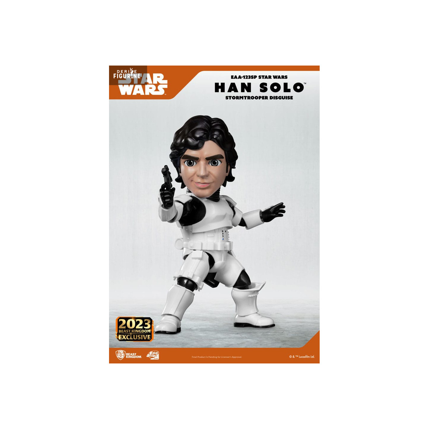 Official figure of Han Solo, Stormtrooper Disguise which measures approximately 17 centimeters high. It is from the Egg Attack collection. The manufacturer is Beast Kingdom.