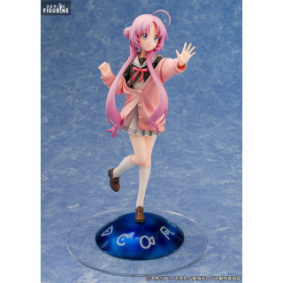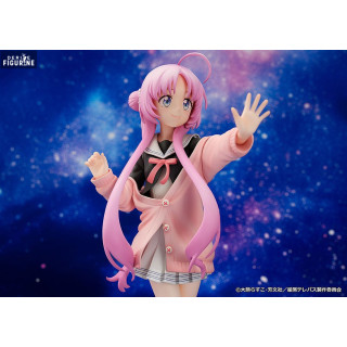 Discover this delightful official figure of Yu Akeuchi, a beloved character from Stardust Telepath. Yu is a sweet and dreamy young girl, known for her desire to connect with extraterrestrials and her boundless optimism. In this faithful representation, she wears her classic school uniform, consisting of a shirt, pleated skirt, and a pink cardigan, emphasizing her warm and endearing nature. Her dynamic pose, with one arm extended as if reaching for the stars, perfectly captures her determined spirit and her ambition to achieve her dreams.