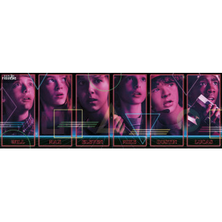 Dive into the mysterious and captivating world of Stranger Things with this 1,000-piece panoramic puzzle, showcasing the iconic characters from Netflix’s beloved series. This illustration features Will, Max, Eleven, Mike, Dustin, and Lucas, each displaying the worry and curiosity that define their adventures in the small town of Hawkins. The series, which has captured the hearts of millions of fans, masterfully blends mystery, science fiction, and 1980s nostalgia. The main characters, bound by an unbreakable friendship, face supernatural forces that challenge reality and endanger their town.