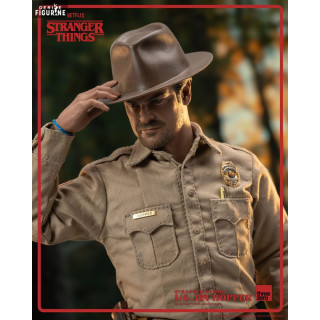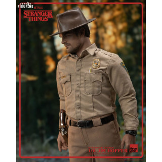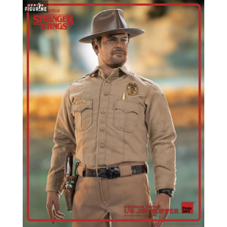 Official figure of Jim Hopper (Season 1) which measures approximately 32 centimeters high, scale 1/6. The manufacturer is ThreeZero.