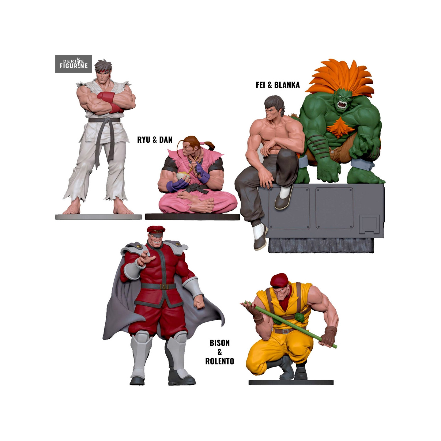 Official figures of your choice between Ryu & Dan, Fei & Blanka or Bison & Rolento in PVC, scale 1/8. The manufacturer is Pop Culture Shock.