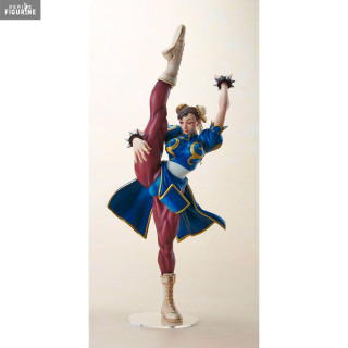 Chun-Li is a Street Fighter fighter born in China and her father is none other than Master Li Laotsin. It is very young that she will begin to be interested in martial arts and will learn several of them before creating her own style of fighting. She wears her classic outfit which is a blue qipao and brown tights, perfectly showing her muscles and her pose proves the full extent of her abilities.