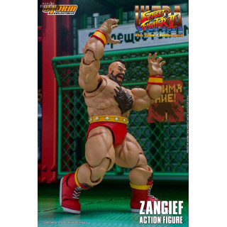 Official figure of Zangief which measures approximately 19 centimeters high, scale 1/12. The manufacturer is Storm Collectibles.